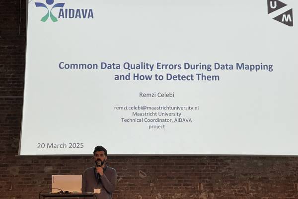 Our coordinator Remzi Celebi from Universiteit Maastricht contributed to the session ‚Advanced Strategies and Tools for Ensuring High-Quality Data during Data Mapping“ with an innovative talk “Common Data Quality Errors During Data Mapping and How to Detect Them”, where he explained the difficulty of mapping data sources to data standards such as FHIR and SNOMED and demonstrated through a simple and concrete example – related to measurement – the different semantic of these two standards. He then explained the tools that have been developed within AIDAVA to support improved and consistent mapping.